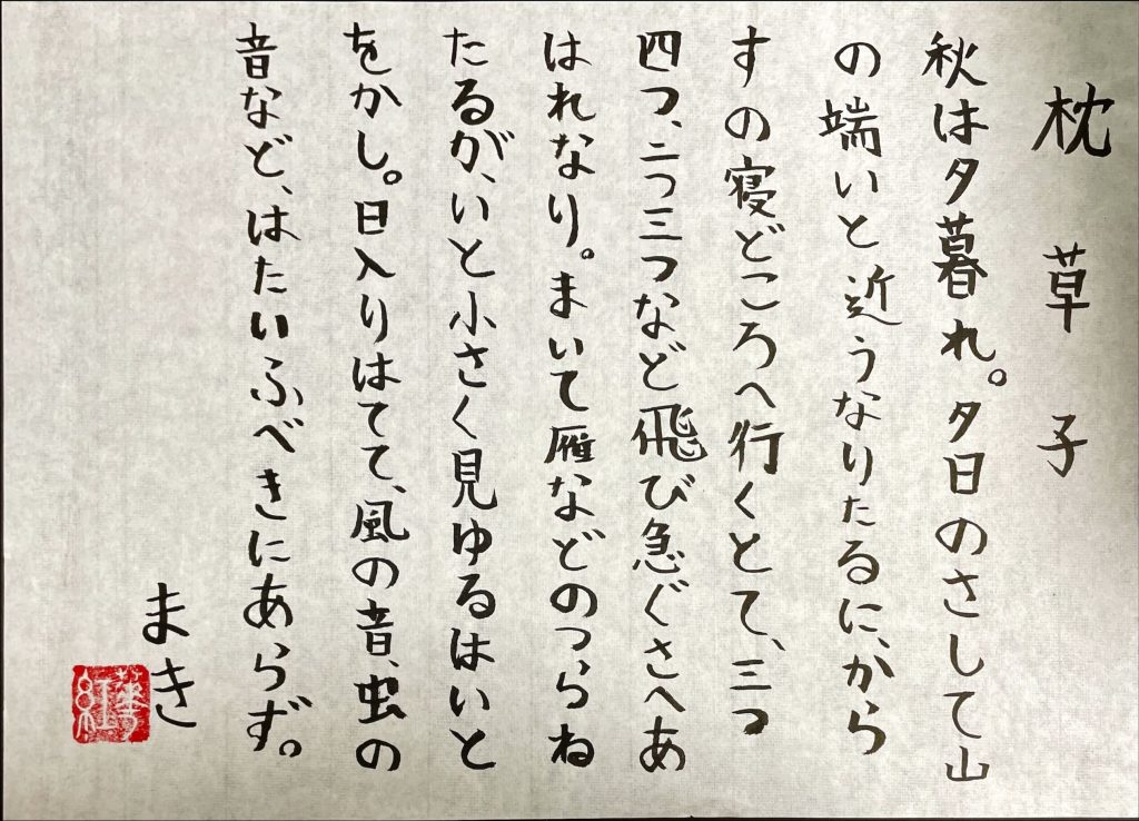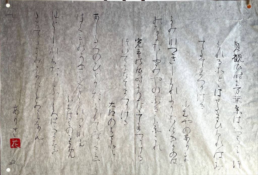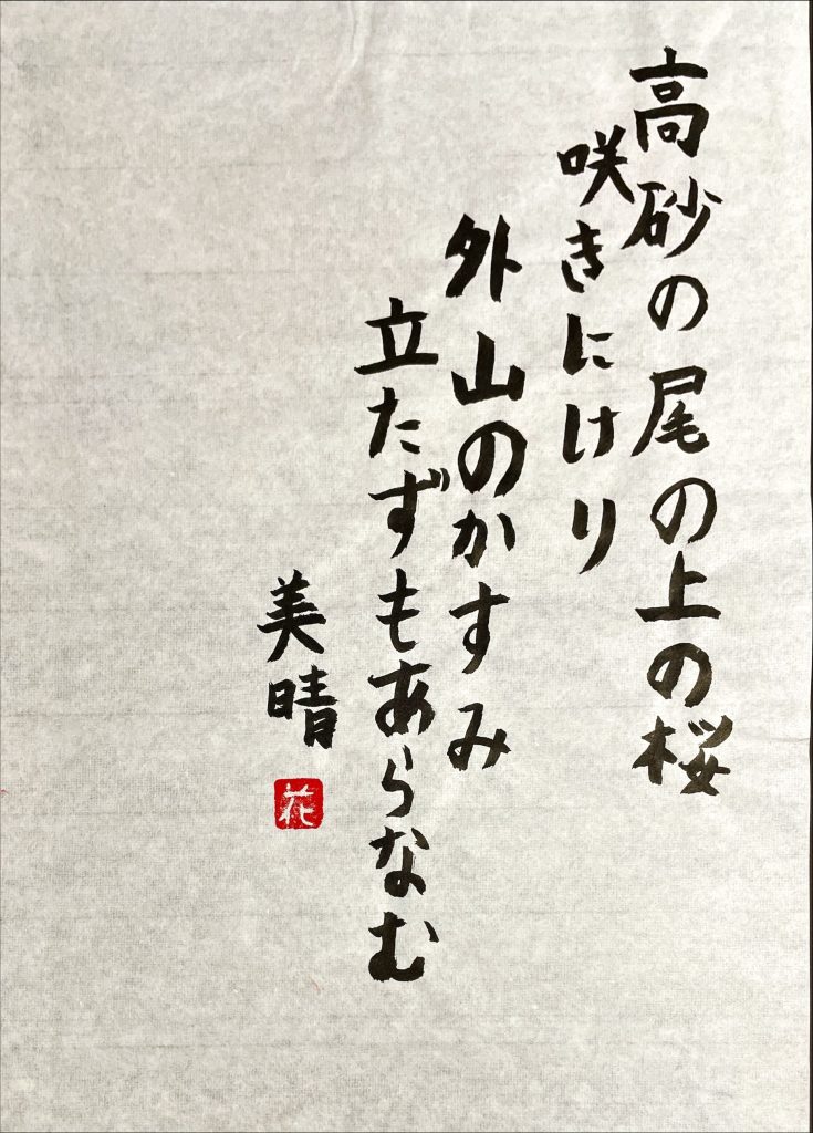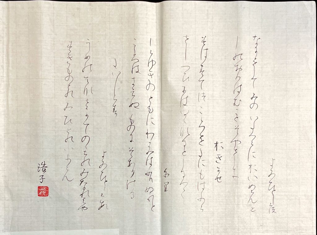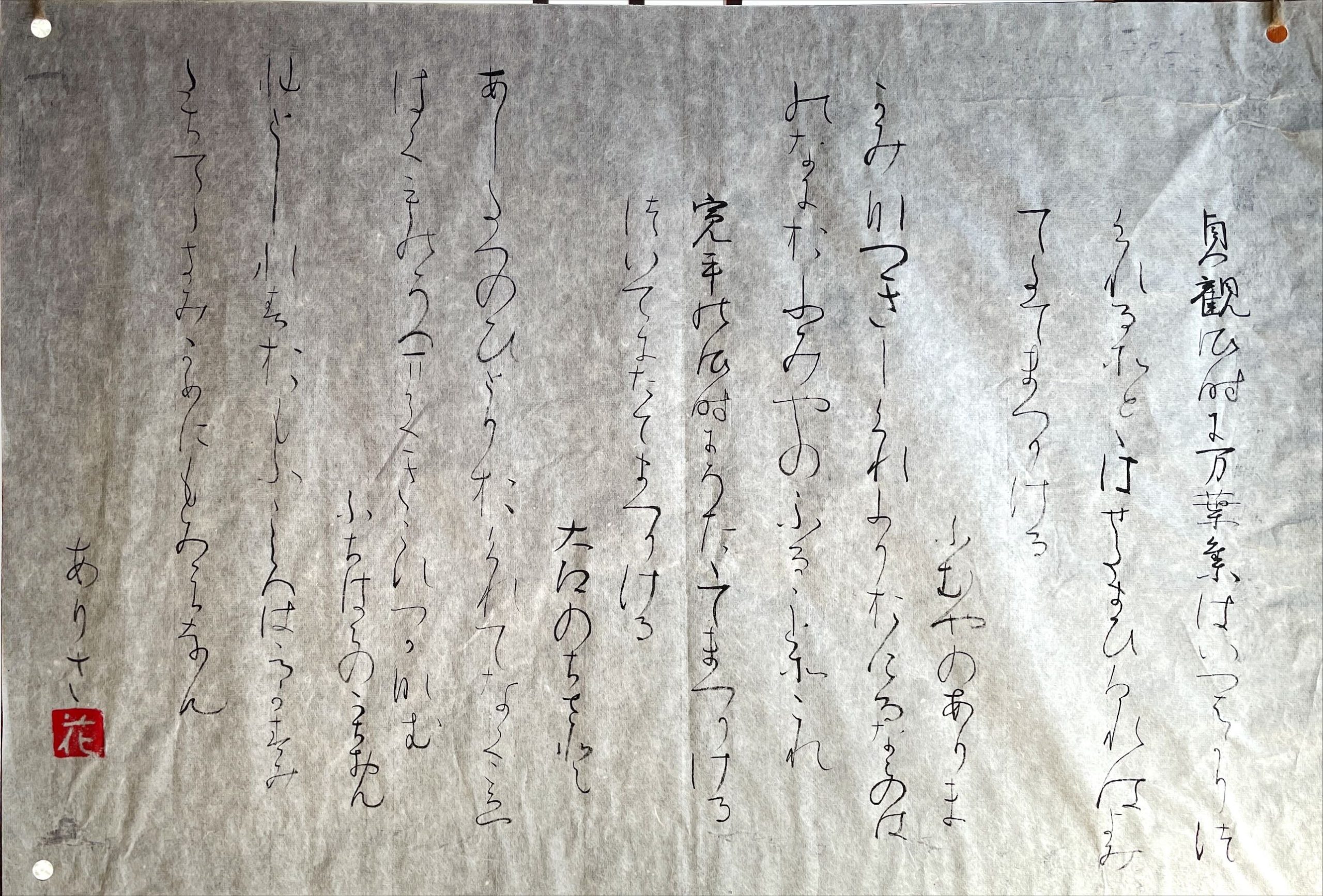 「10年も経ったかなぁ」という肌感覚とは裏腹に、振り返ってみれば、書塾花紅は初め本当に小さな集まりで、私もまだまだ教えることに自信がなく、慎ましやかに蓮月の2階を借りていました。イスラエルの方々との交流があったり、コロナ禍ではLINEでレッスンを続け、2度の引っ越しを経て、今に至ります。そう思えば、すでに歴史がありますね。