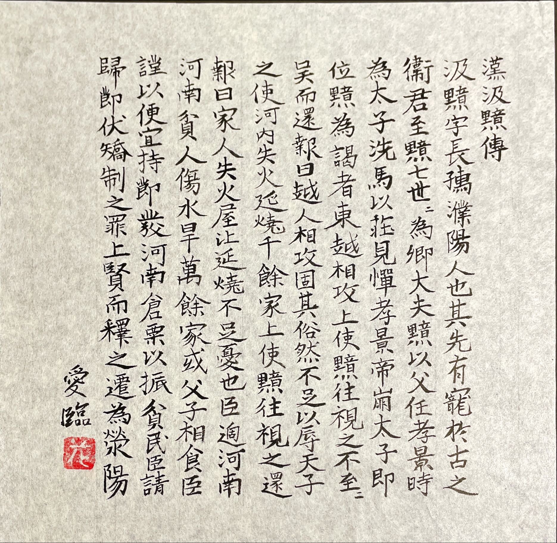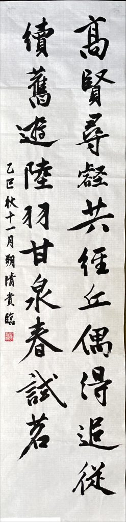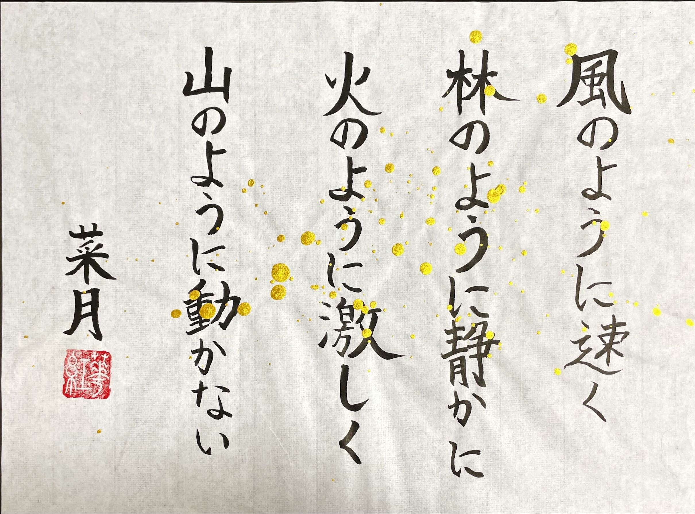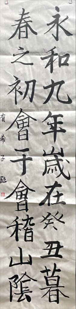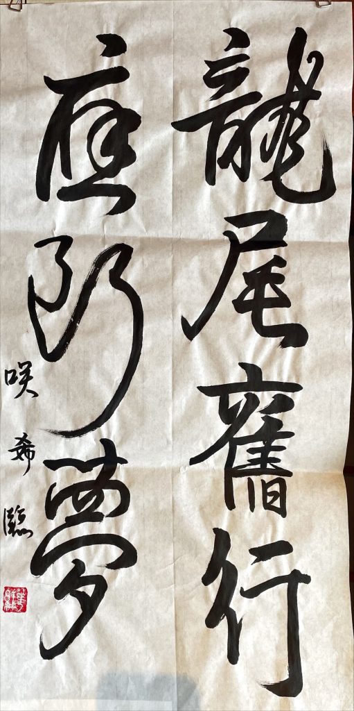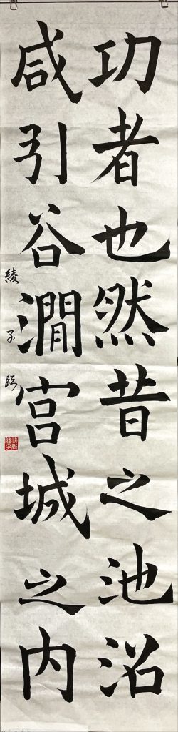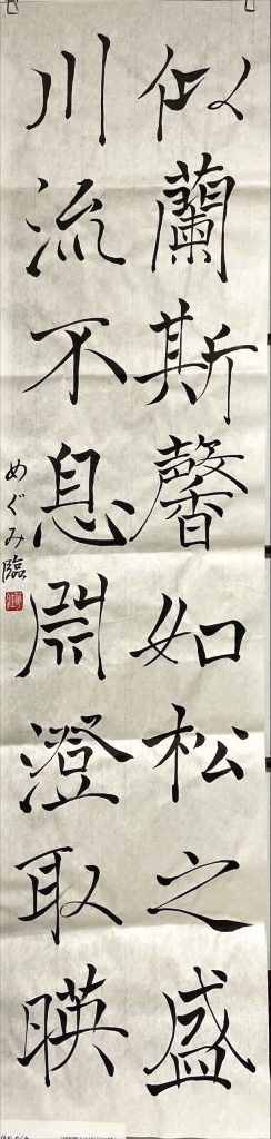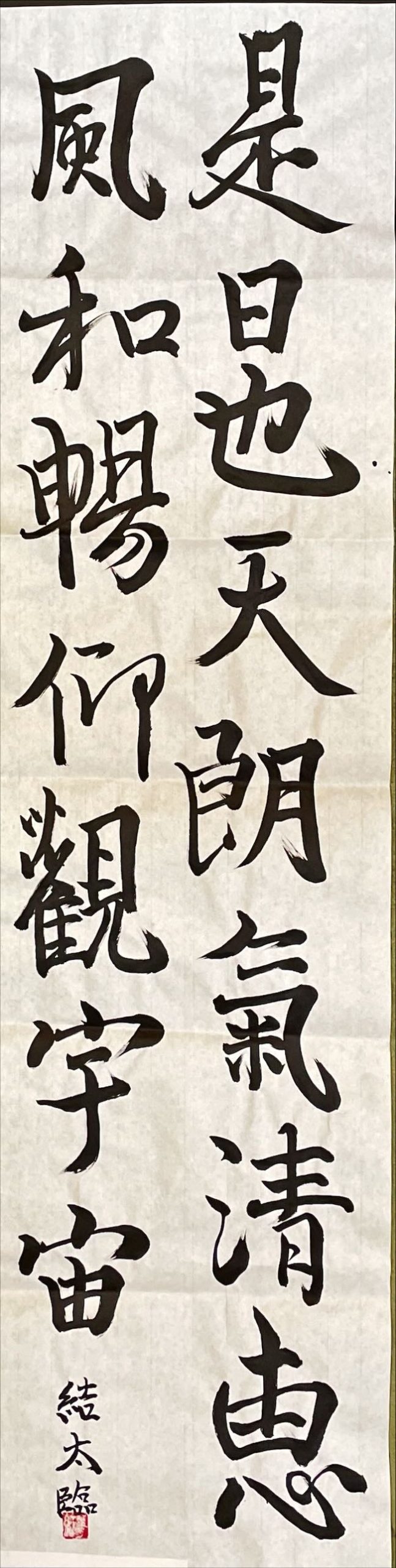 先日、高校1年生になった卒業生からとてもうれしいメッセージが届きました。「高校の選択科目で書道を選び、蘭亭序の全文を書いたときもスラスラ書くことができました!学校の先生に褒められることも多々あって、習っていてよかったと思いました!」とのこと。書塾花紅は小中学生の頃から古典を学ぶ機会を多くとっています。小中学校では書写の筆遣いとは異なるために苦労するところもあるのですが、高校に入って身についている筆遣いの柔軟さをしっかりと実感できるようです。10年の子どもたちとの関わりを経て、私も自分の指導法に確かな自信を持ち始めています。長く続けてくれている子どもたち、本当にありがとう。